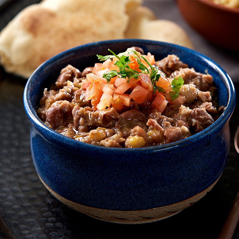 Braised fava beans seasoned with garlic, lemon and olive oil